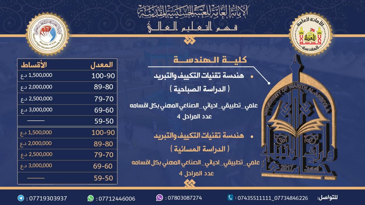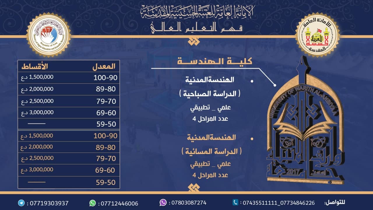 عنوان الجامعة العراق - كربلاء المقدسة / طريق بغداد - كربلاء