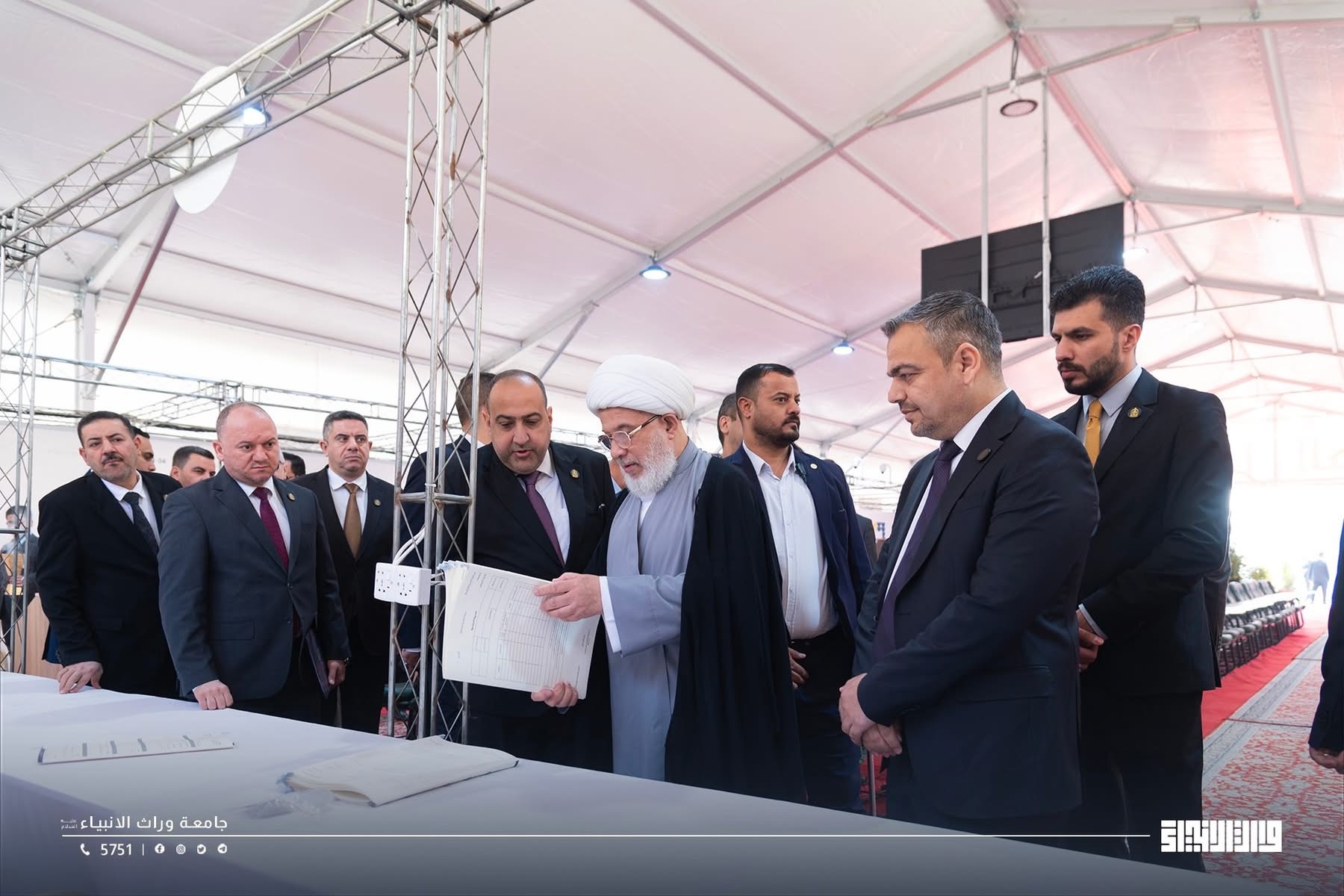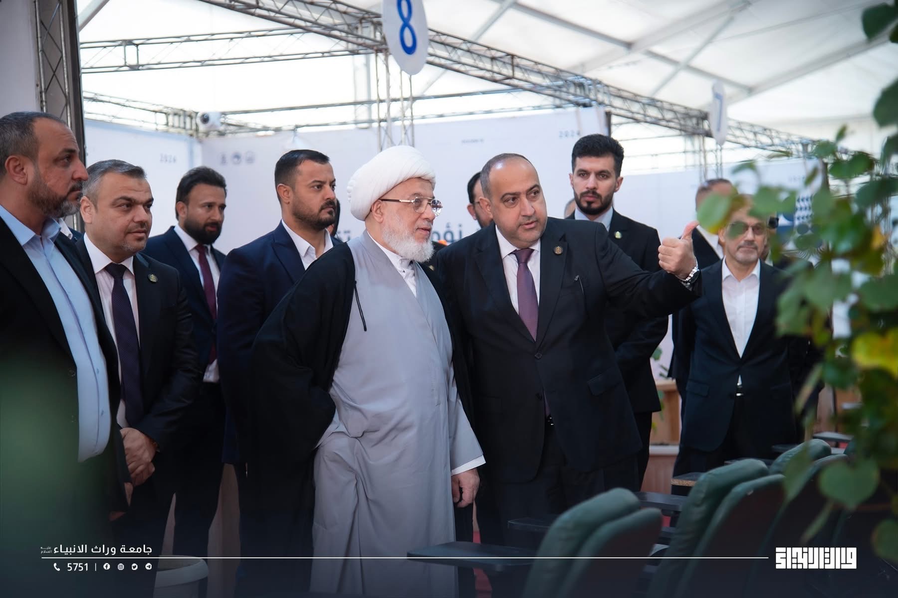 ممثلُ المرجعيةِ الدينيةِ العليا، سماحة الشيخ عبد المهدي الكربلائي (دام عزّه)، يزورُ خيمةَ التسجيل في جامعةِ وارث الأنبياء (ع) ويلتقي بعوائلِ الطلبة.