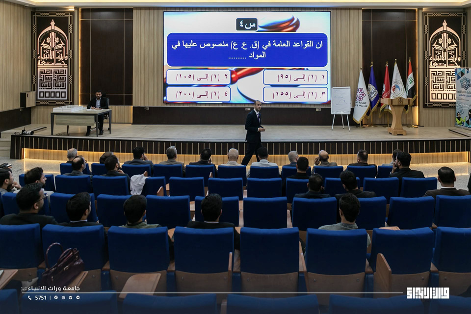 نظّمت كلية القانون في جامعة وارث الأنبياء (عليه السلام) مسابقة علمية لطلبة المرحلة الثانية، بحضور السيد المساعد الإداري الأستاذ الدكتور نوفل الأعرجي، وذلك في إطار حرص الجامعة على تنمية القدرات العلمية وتعزيز روح المنافسة الإيجابية بين الطلبة.