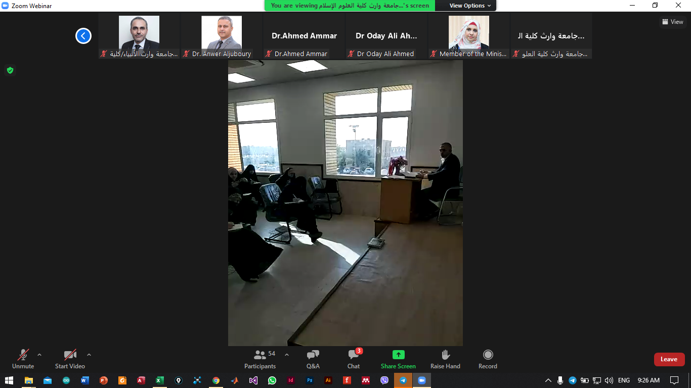 وضمن المتابعة الالكترونية مع الوزاره التي يؤديها مركز التعليم التعليم المستمر / شعبة التعليم الالكتروني ، تمت زيارة الجامعة من قبل الفريق الوزاري متمثلا بالدكتور(انور الجبوري) فقد زار الفريق الوزاري كلا من كلية التمريض وكلية الطب وكلية العلوم الاسلامية وقد اطلع على القاعات الدراسية والمختبرات في الكليات ضمن الزيارة اكد الفريق الوزاري على ضرورة ارتداء الكمامات والتباعد الاجتماعي كما قد تم سؤال التدريسيين في القاعات عن اعداد الحضور والغياب. وتاتي هذه الزيارة ضمن العديد من الزيارات التي يؤديها الفريق الوزاري للجامعة للاطلاع على سير عملية التعليم والاهتمام بالجانب الصحي . في الختام عبر الفريق الوزاري عن شكره للجامعة لما تقدمة للطلبة من اهتمام علمي وصحي.
