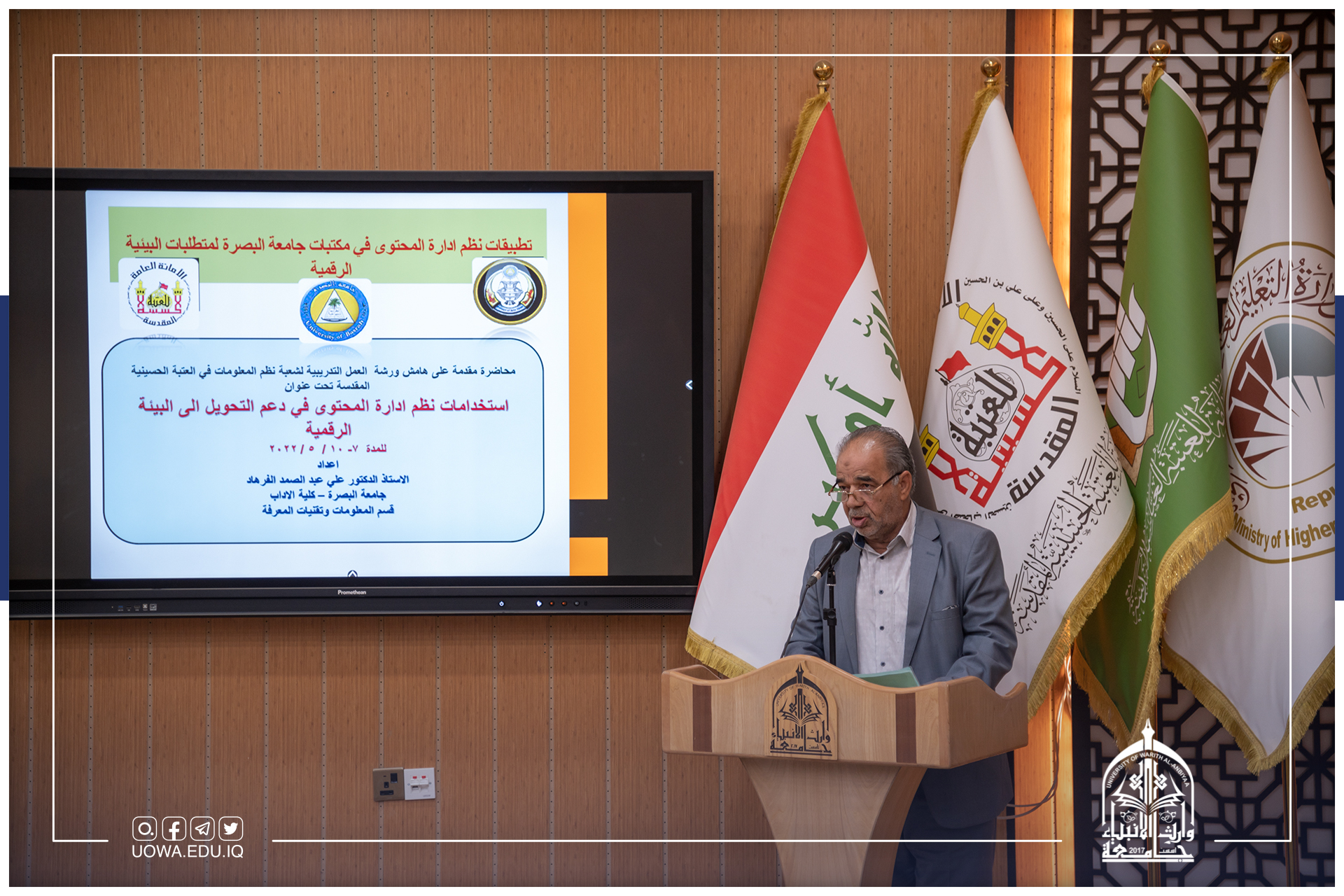 سعياً من رئاسة جامعة وارث الانبياء (عليه السلام) في دعم التحول الى البيئة الرقمية أقامت العتبة الحسينية المقدسة ضمن برنامجها التعاوني مع الجامعات العراقية