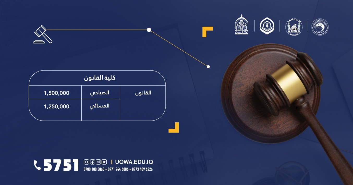 يسر جامعة وارث الانبياء(عليه السلام) أن تعلن للطلبة الاعزاء الراغبين ببدء اولى خطواتهم في طريق النجاح عبر التقديم على كليات واقسام الجامعة ،عن قيمة الاقساط الدراسية للعام الدراسي (2022-2023)