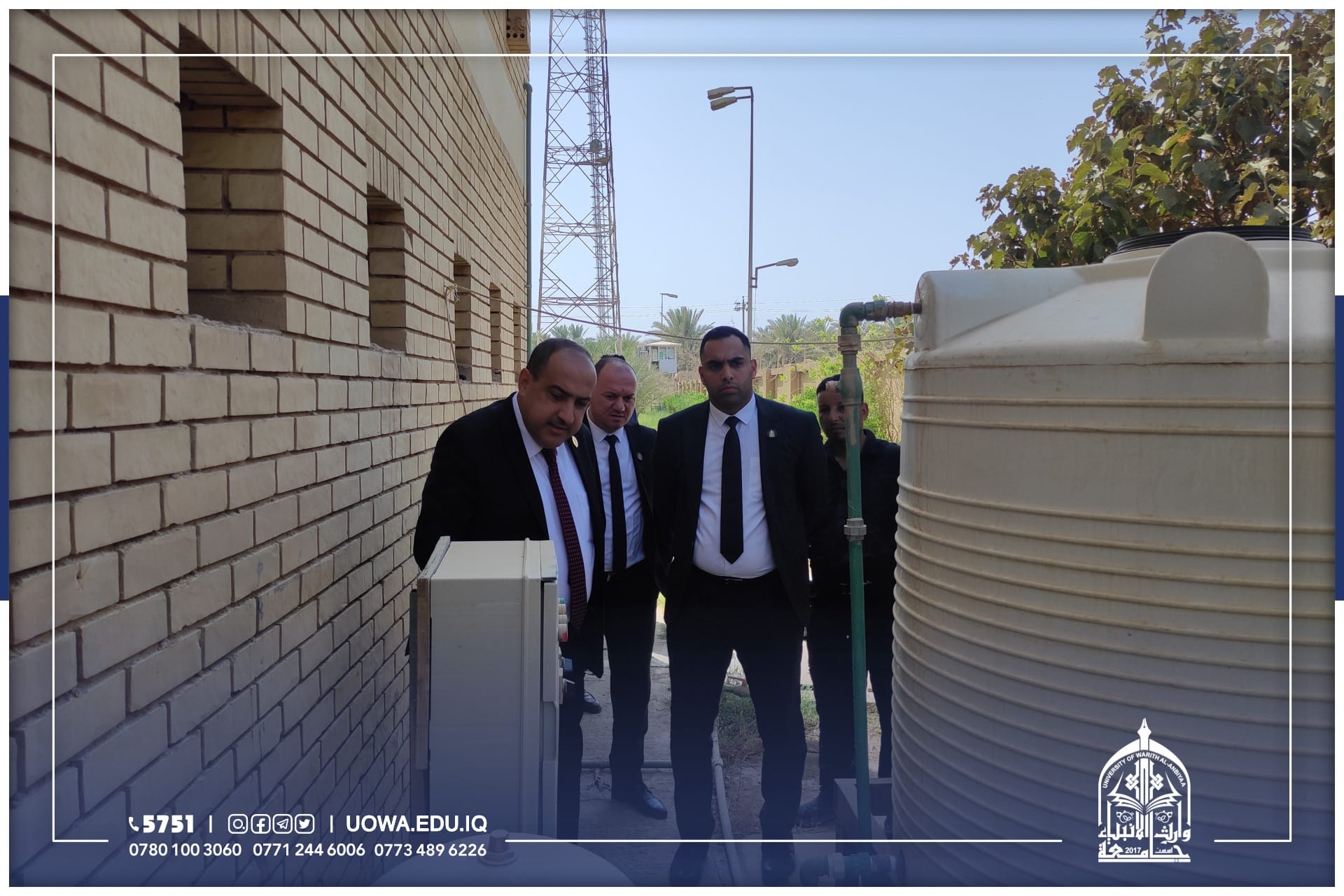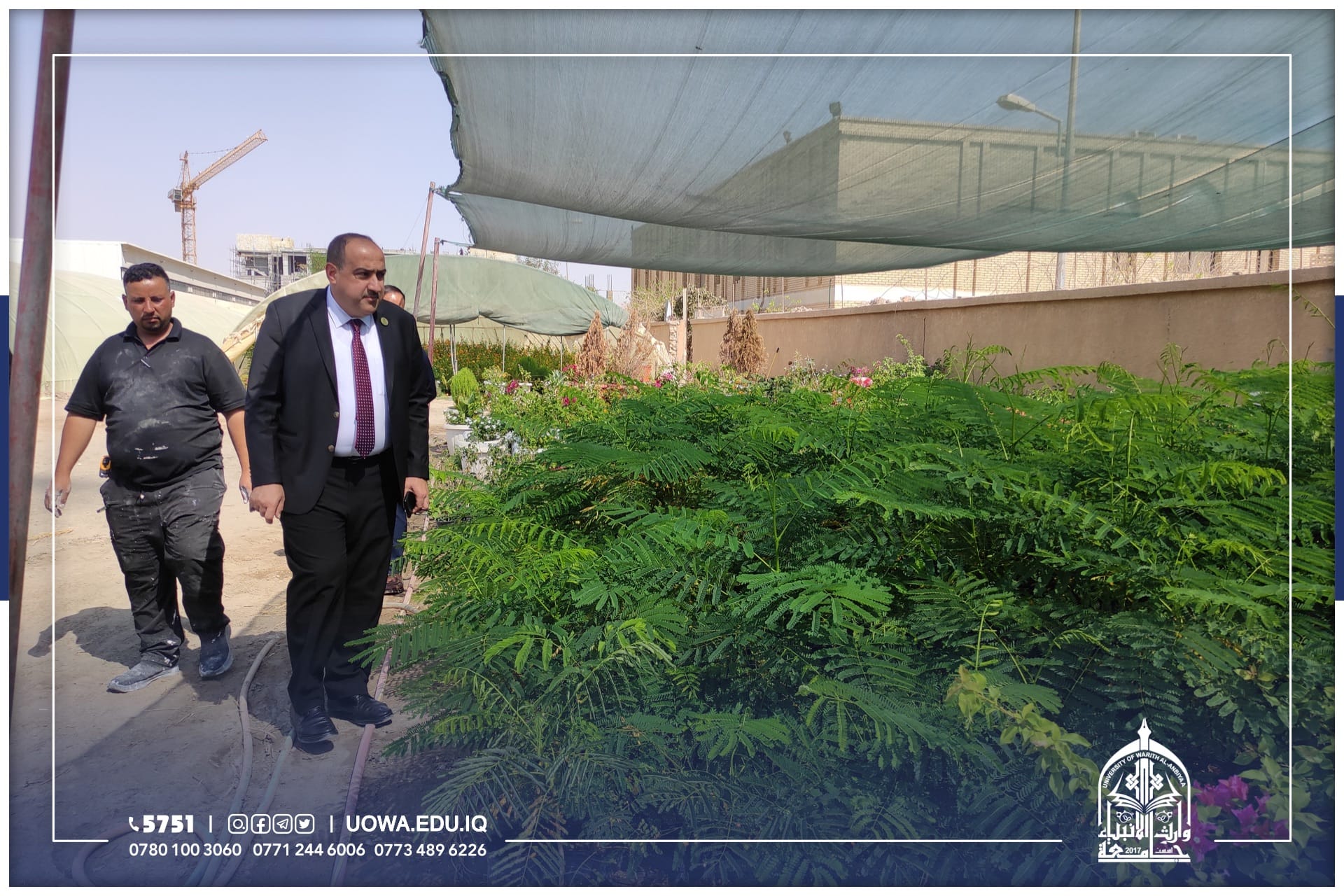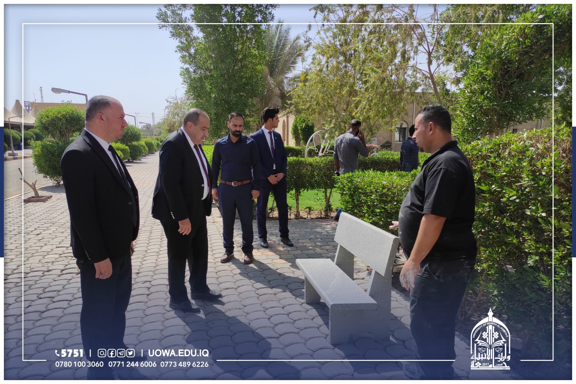 للوقوف على اهم الاستعدادت للعام الدراسي القادم، جانب من الجولة التفقدية لرئيس جامعة وارث الأنبياء (عليه السلام) الاستاذ الدكتور أبراهيم سعيد الحياوي برفقة بعض روساء الاقسام الفنية والإدارية، في أروقة ومباني الجامعة للوقوف على أحتياجاتها وأستعدادتها، اضافة إلى تهيئة مساحات خضراء وواجهات عمرانية جديدة، تحضيرا للعام الدراسي الجديد.