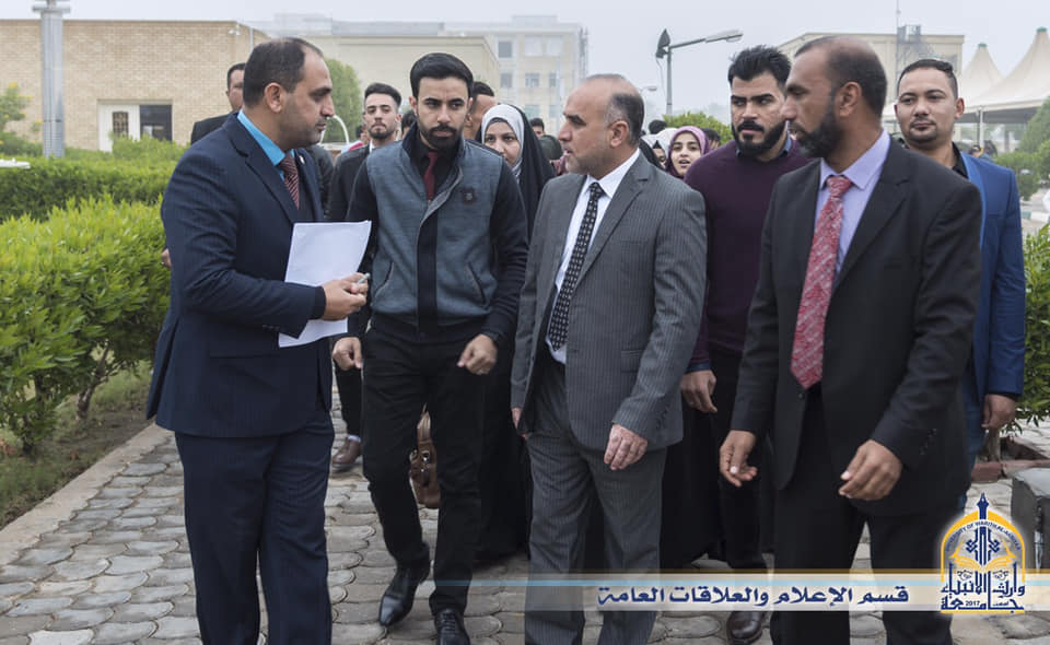 زار وفداً من اساتذة وطلبة كلية التمريض في جامعة كربلاء برئاسة عميد الكلية الاستاذ الدكتور علي كريم جامعة وارث الأنبياء التابعة للعتبة الحسينية المقدسة للإطلاع على واقع الجامعة والمختبرات العلمية الموجوده في كلية التمريض والبنى التحتية ، حيث أبدى الوفد اعجابه الشديد بالجامعة وبالإمكانيات العلمية لها