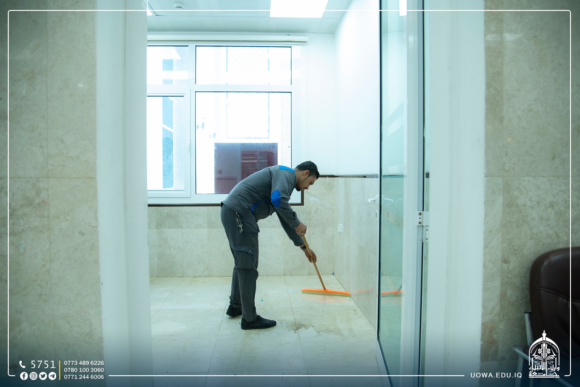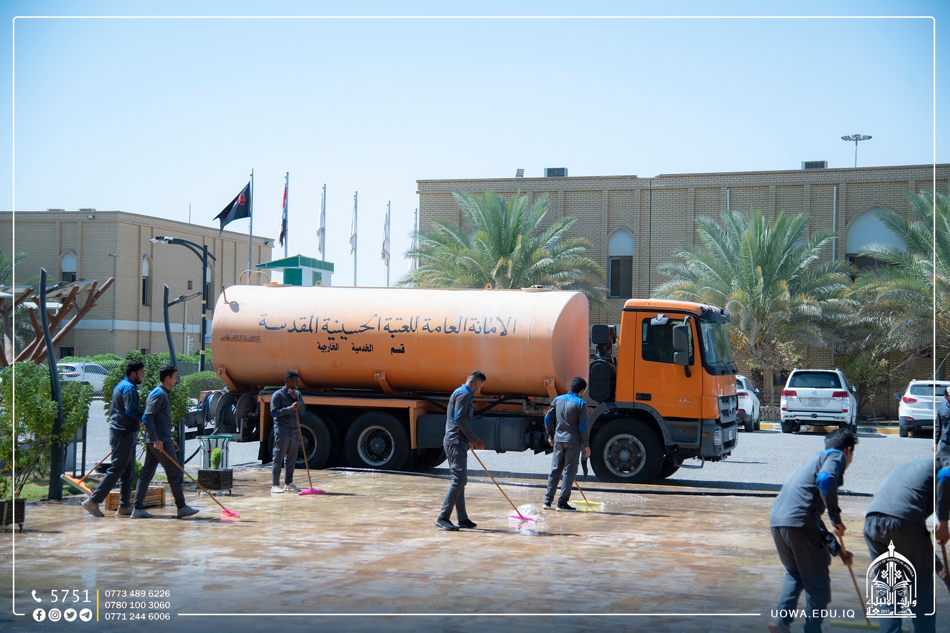 قسم رعاية الحرم في العتبة الحسينية المقدسة بكادره المتخصص يباشر بأعمال تهيئة مباني الجامعة وادامتها ضمن الاستعدادت للعام الدراسي الجديد.