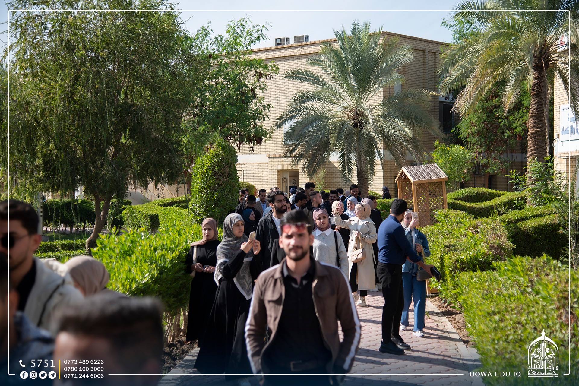 جامعة وارث الانبياء(عليه السلام) تستقبل عدد من طلبة جامعة بغداد/كلية الآداب /قسم الجغرافية برفقة اعضاء هيئة التدريس بسفرة علمية، حيث تجول الطلبة داخل اروقة الجامعة ومختبراتها العلمية.
