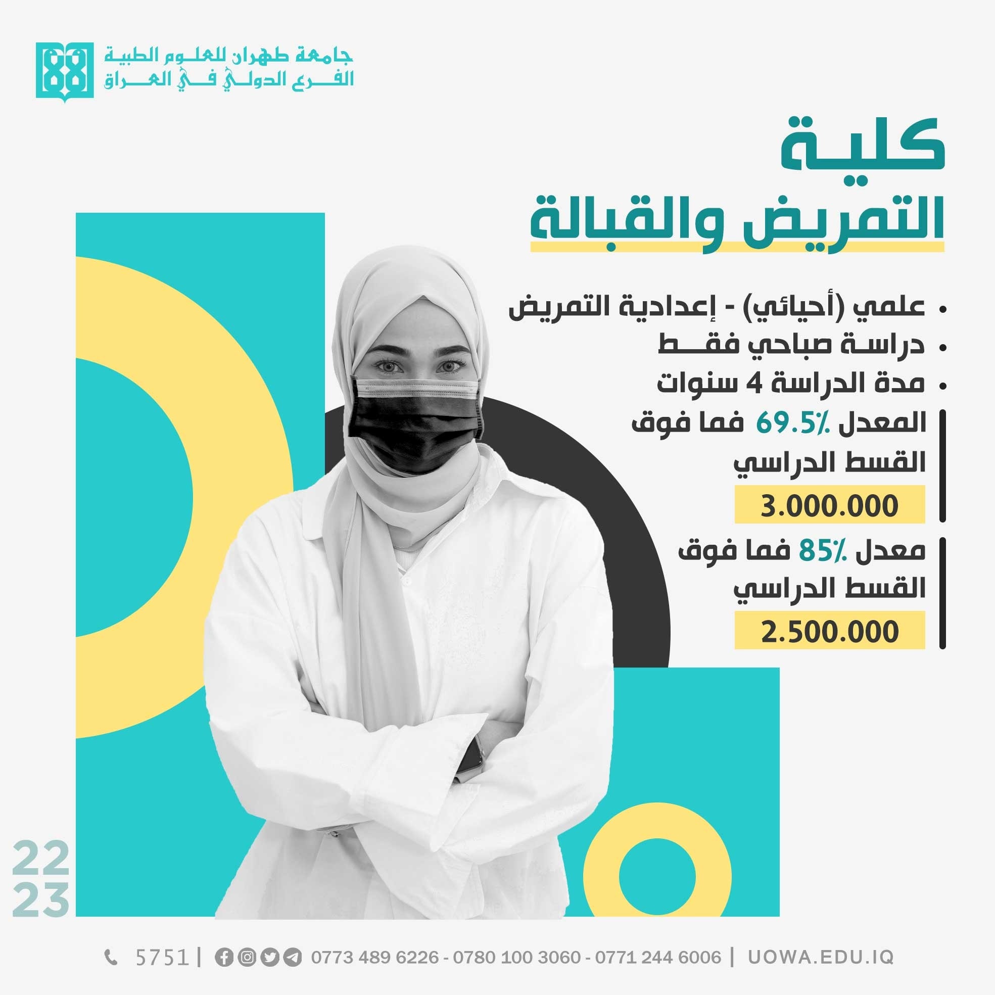 *كلية التمريض والقبالة/ صباحي فقط/ الحد الادنى للتقديم 69.5 (علمي-احيائي- اعدادية التمريض).