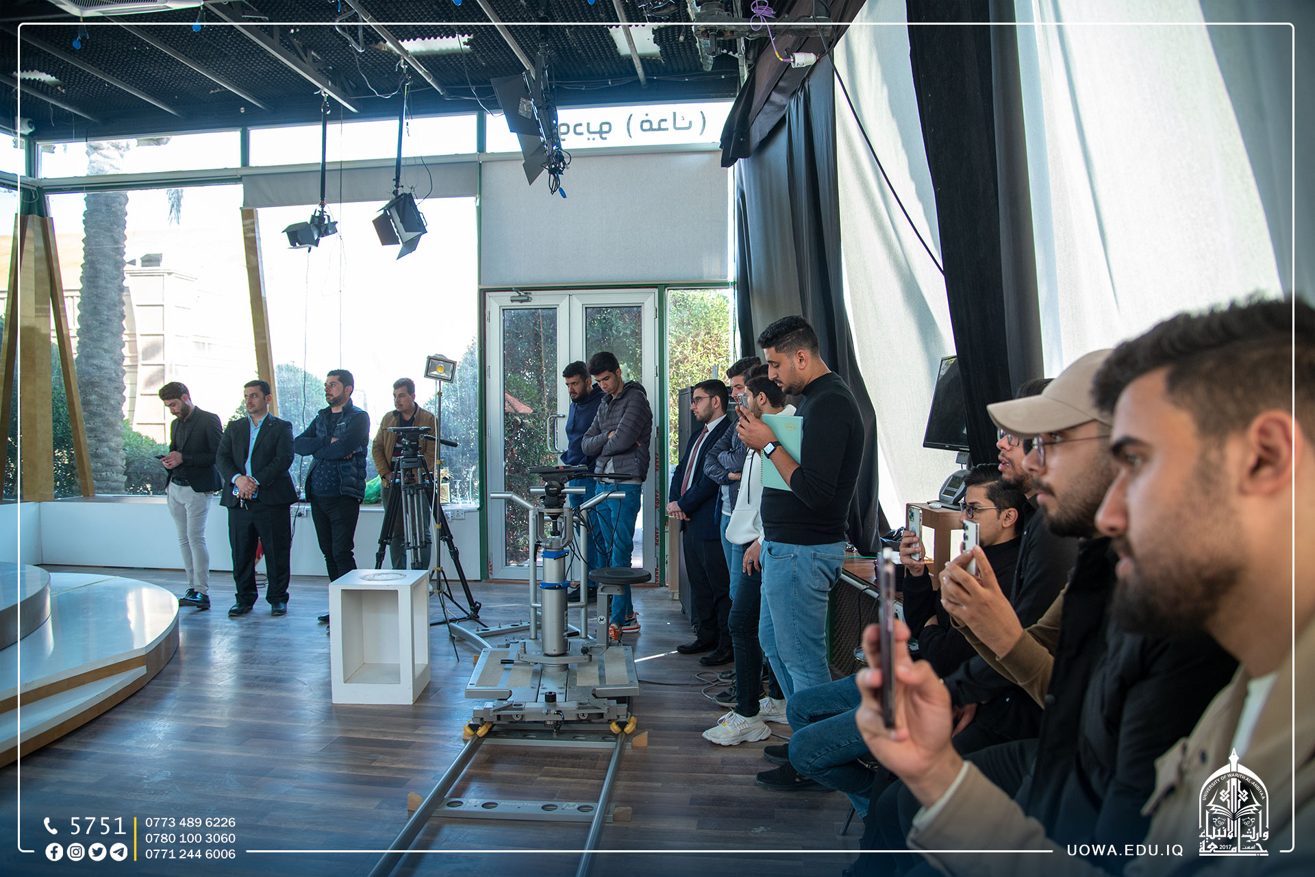 اطلع طلبة كلية الاعلام في جامعة وارث الانبياء عليه السلام بما تقوم به اقسام مجموعة قنوات كربلاء الفضائية والمزج الحاصل في العمل بين الاعلام التقليدي والرقمي ضمن البرنامج العلمي التدريبي للكلية حيث بين عميد كلية الإعلام الدكتور محمد الطيف بأن الطلبة ومن خلال هذه الزيارة تعرفوا على عمل مجموعة قنوات كربلاء على المستوى الفني كالاعداد والتقديم والديكور والمونتاج والكرافك ناهيك عن ادارة وانتاج الموضوعات الاعلامية على برامج التواصل الاجتماعي موضحا ان الكلية ومن خلال توجيهات رئاسة الجامعة تضع من اولوياتها التدريب العملي والاطلاع على التجارب الناجحة في المؤسسات الاعلامية لذا فانها تهيء الظروف المناسبة لأيجاد بيئة لأكتساب المهارات من قبل طلبتها