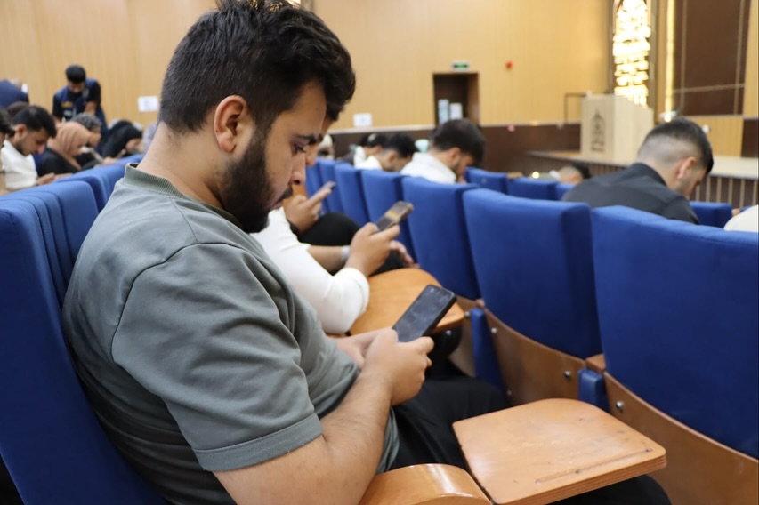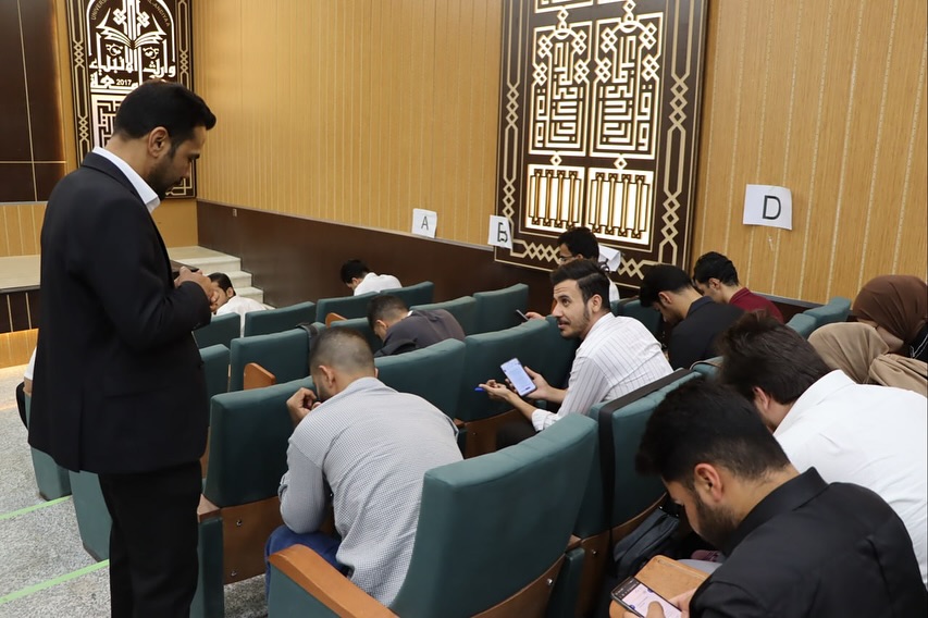 وتظهر الصور تفاعل الطلبة الجاد أثناء أداء الامتحانات الإلكترونية وانسيابية سير العملية الامتحانية كلية الطب جامعة وارث الأنبياء عليه السلام