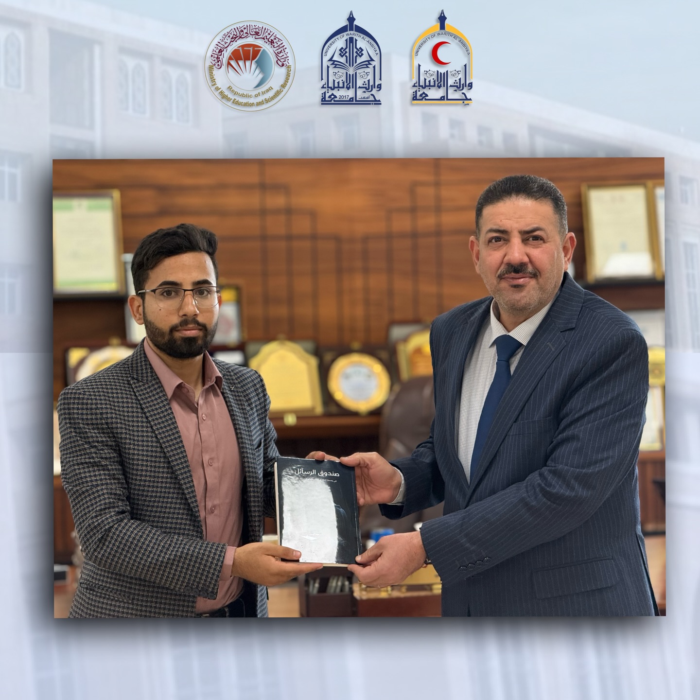 The Dean of the College of Medicine congratulates student Hamza Thajil Mukhaif on the authorship of his book.