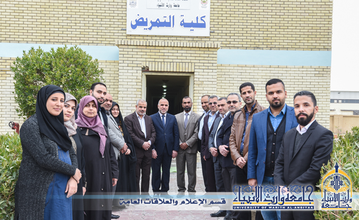 زار وفد من جامعة كربلاء جامعة وارث الانبياء  من اجل تبادل الخبرات وفتح افاق التعاون بين الجامعتين حيث قدم رئيس الوفد الدكتور علي كريم خضير عميد كلية التمريض في جامعة كربلاء التهاني للجامعة وخص الدكتور خميس بندرعبيد عميد كلية التمريض في جامعة وارث الانبياء بلتبريكات متمنيا له وللجامعة كل التوفيق في مسيرتهم العلمية خدمة للمجتمع