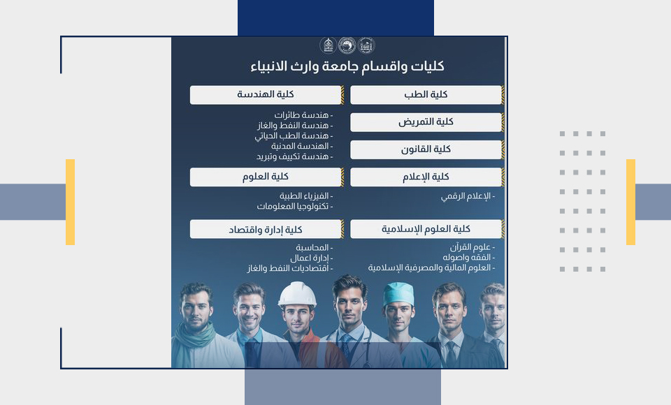 أعلنت جامعة وارث الأنبياء (عليه السلام) عن إتاحة التقديم لخريجي الدراسة الإعدادية الفرع المهني/ قسم المساحة، للالتحاق بكلية الهندسة - قسم الهندسة المدنية. وبهذا القرار، يُمنح الخريجون فرصة متابعة دراستهم الأكاديمية في مجال الهندسة المدنية ضمن الجامعة.