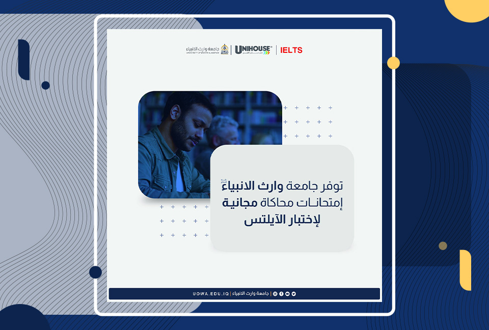 في إطار دعم الطلاب وتحضيرهم لاختبار الآيلتس البريطاني، تقدم جامعة وارث الأنبياء (عليه السلام) امتحانات محاكاة مجانية، بهدف مساعدة الطلاب على فهم تفاصيل الاختبار وتقليل التوتر المصاحب له.