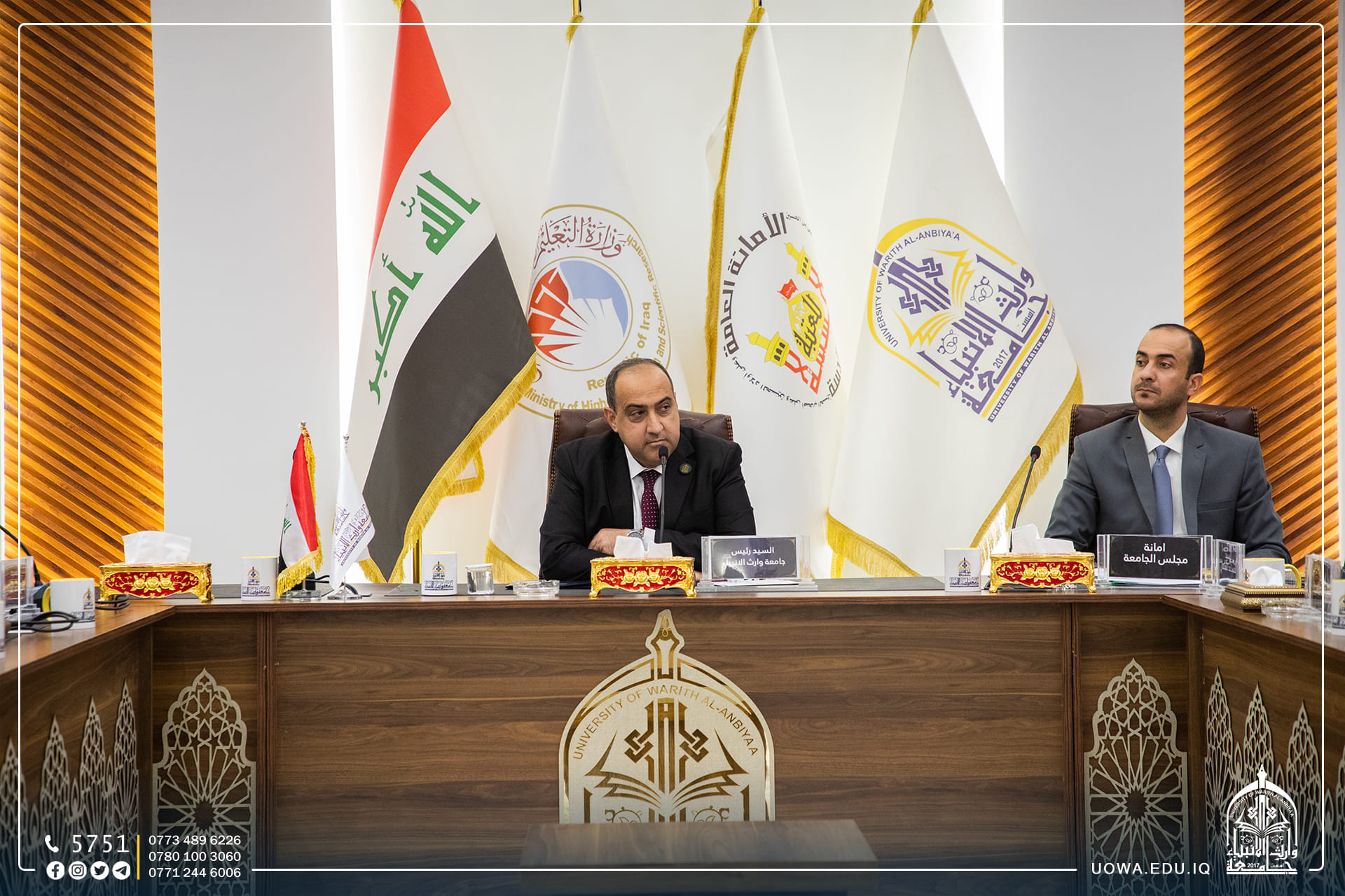 عقد مجلس جامعة وارث الأنبياء (عليهم السلام) جلسته الاعتيادية برئاسة الأستاذ الدكتور إبراهيم الحياوي، حيث شارك في الاجتماع السادة مساعدي رئيس الجامعة للشؤون الإدارية والعلمية، وعمداء الكليات.تركزت الجلسة على مناقشة واتخاذ قرارات حيوية تخدم مصلحة الجامعة وتعزز جودة التعليم والخدمات المقدمة للطلاب. وقد تناولت القضايا المطروحة مجموعة متنوعة من الجوانب الأكاديمية والإدارية.تمحورت المناقشات حول الخطط الاستراتيجية للتطوير الأكاديمي وتحسين بيئة الدراسة، وتقديم الدعم اللازم للأقسام البحثية والعلمية. كما تناول المجلس استعراضًا لأداء الجامعة في الفصل الدراسي الحالي ومتابعة تقديم الخدمات الإدارية.تعكس هذه الاجتماعات التزام الجامعة بتحقيق الريادة الأكاديمية والإدارية، وتعزز الشفافية والحوكمة الفعّالة داخل الجامعة. يأتي هذا النشاط في إطار جهود الجامعة لتعزيز جودة التعليم وتطوير بنيتها التحتية الأكاديمية والإدارية.