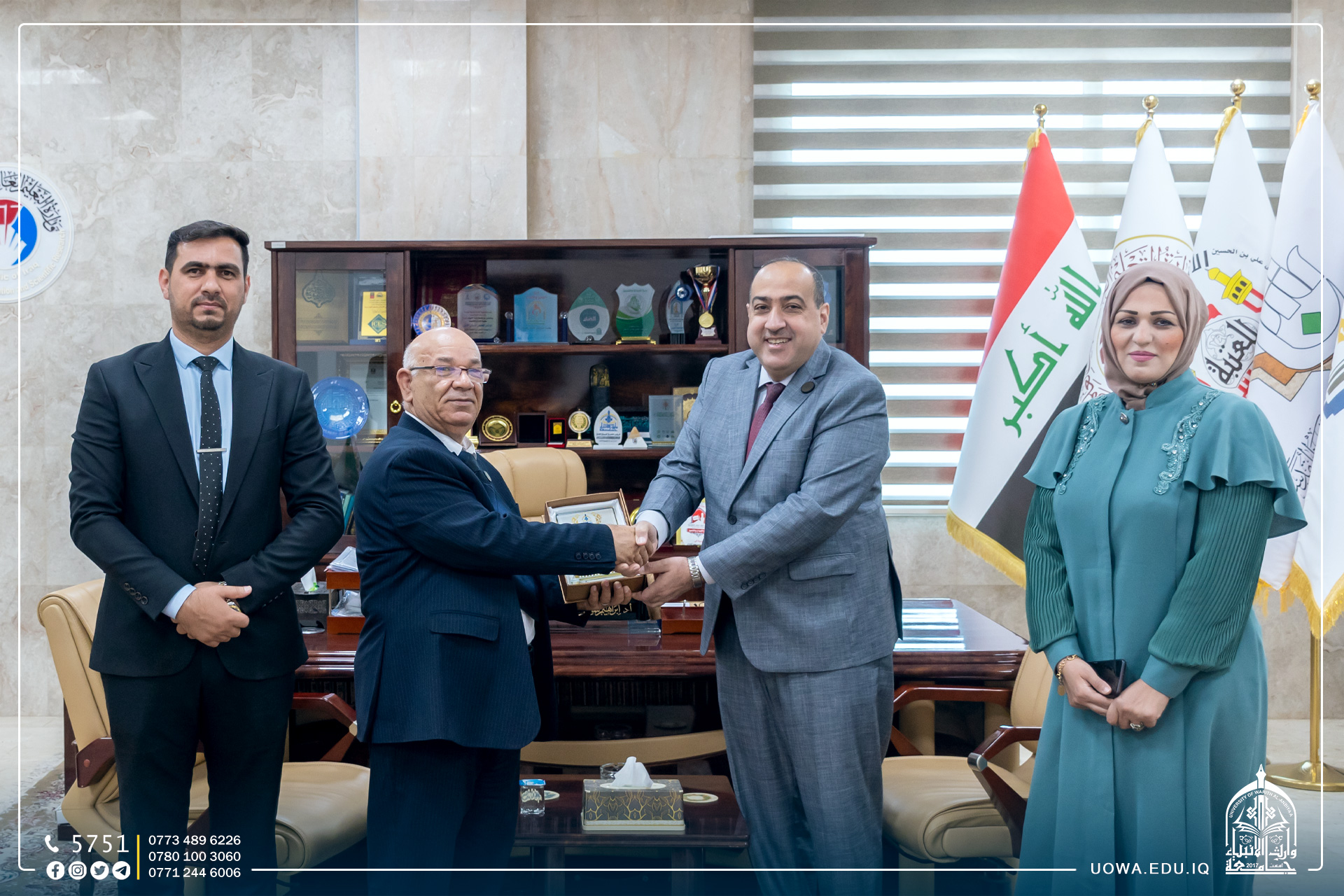 على هامش "المؤتمر العلمي الاول" لكلية الإدارة والاقتصاد في جامعة وارث الانبياء(عليه السلام)، قدمت عمادة الكلية درع الشكر والتقدير الى السيد رئيس الجامعة الاستاذ الدكتور ابراهيم الحياوي لجهوده القيمة في رعاية المؤتمر، وتقديمه الدعم اللامحدود لاتمام هذا النشاط المهم بالاضافة الى تكريم السيد المساعد الاداري الاستاذ الدكتور نوفل الاعرجي لجهوده القيمة في دعم أنشطة الكلية.