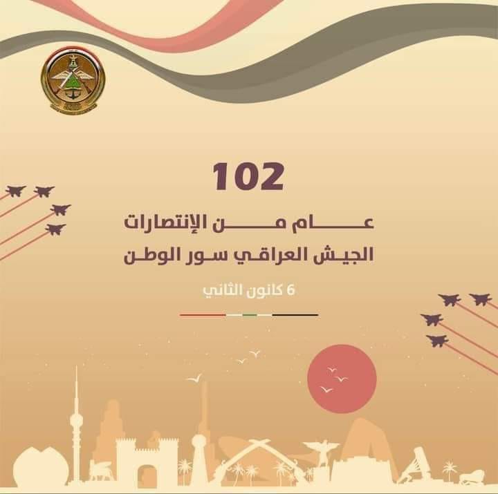 رئاسة جامعة وارث الانبياء (عليه السلام) تبارك لكم الذكرى (101) لتأسيس الجيش العراقي البطل، وتحيي المقاتلين الغيارى في مختلف صنوف وتشكيلات القوات المسلحة البطلة الذين ما زالوا يسطرون أروع صور البطولة والفداء دفاعاً عن العراق ومقدساته وشعبه وحرمة اراضيه ويواصلون ادامة الانتصارات ومطاردة اعداء الوطن من بقايا العصابات الارهابية