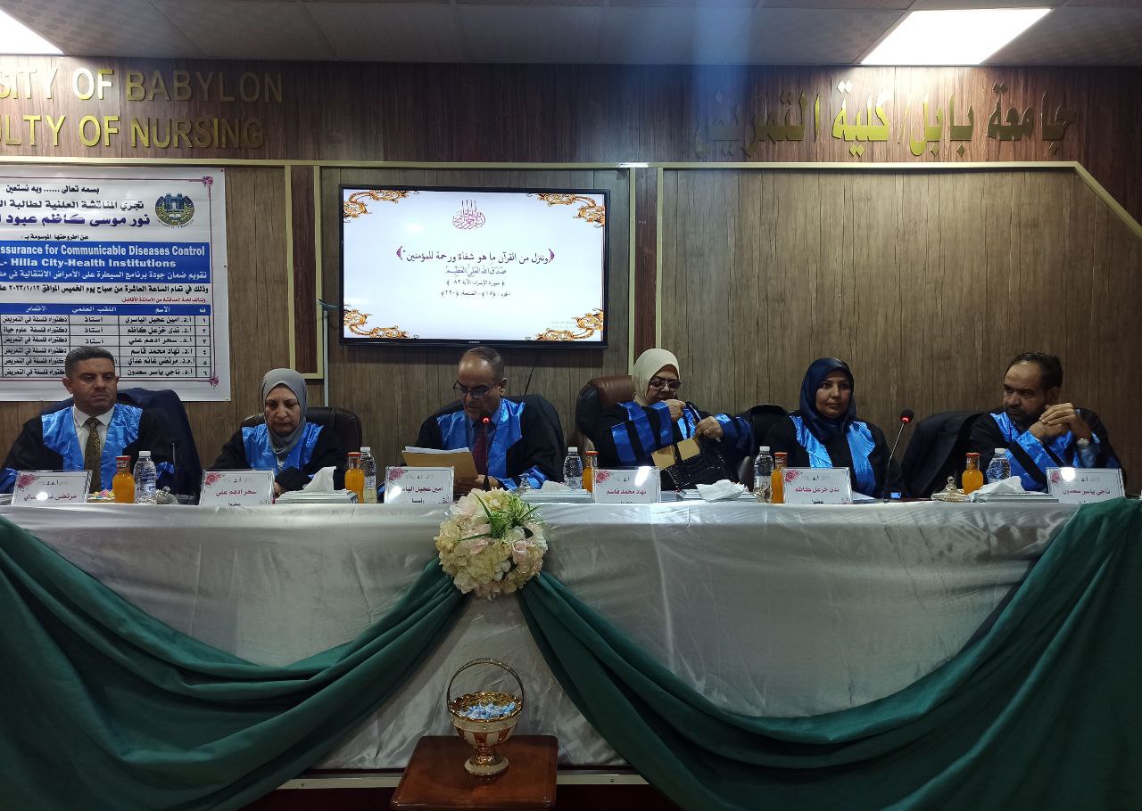 اختير الدكتور مرتضى غانم عداي الجبوري عميد كلية التمريض، في جامعة وارث الانبياء (عليه السلام) عضوا لمناقشة أطروحة الدكتوراه لاحد طلبة الدراسات العليا في جامعة بابل/ كلية التمريض.