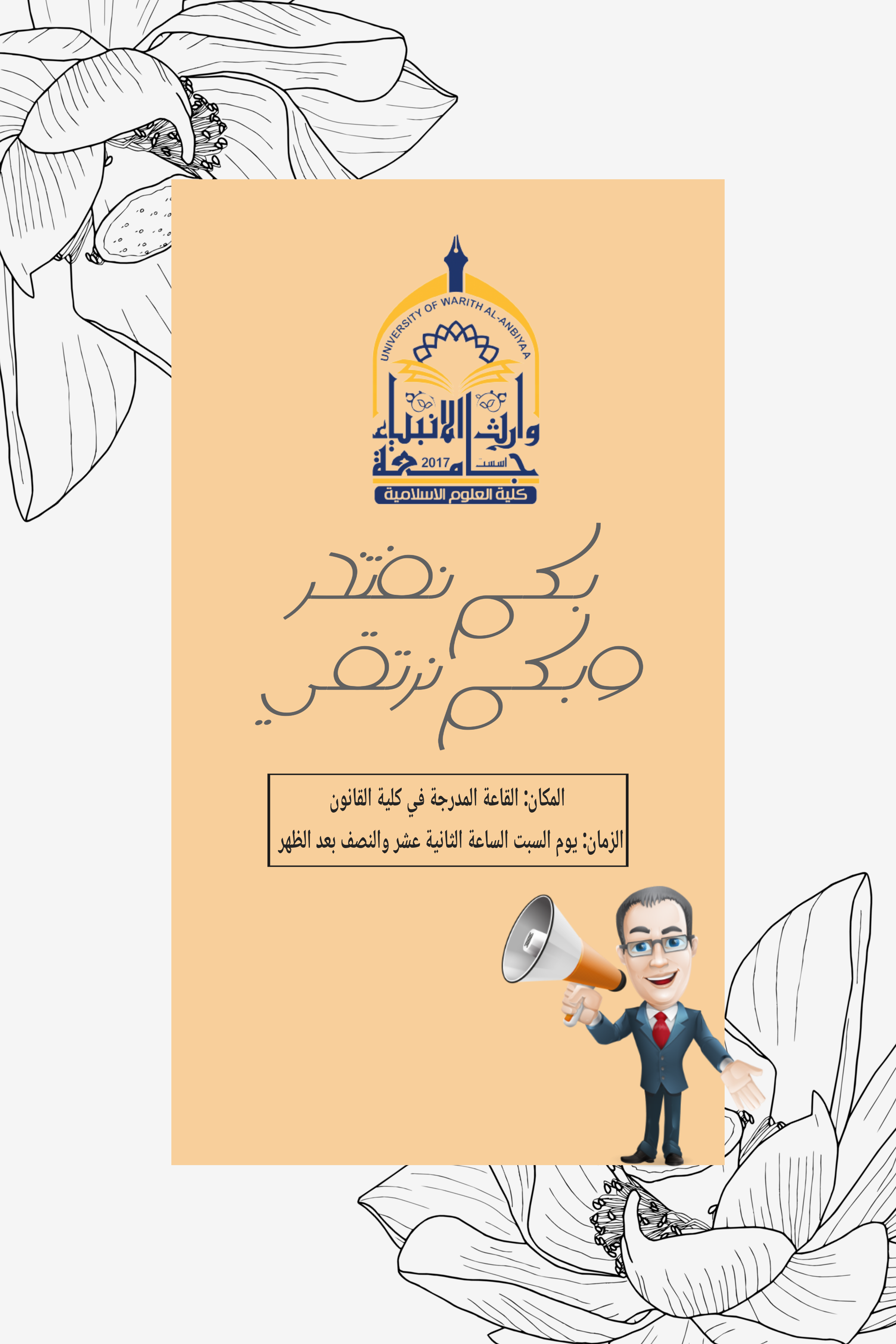 برعاية كريمة من الاستاذ المساعد الدكتور طلال فائق الكمالي تنظم عمادة كلية العلوم الاسلامية مناسبات عدة في يوم السبت الموافق ٧/١/٢٠٢٣ وهي الاتي:المناسبة الاولى: حفل استقبال وتعارف طلبة المرحلة الاولى للدراستين الصباحي والمسائي.المناسبة الثانية : حفل تكريم الطلبة الاوائل للعام الدراسي ٢٠٢١-٢٠٢٢.المناسبة الثالثة : حفل تكريم الخريجين للعام الدراسي ٢٠٢١-٢٠٢٢.المناسبة الرابعة : حفل تكريم بحوث التخرج الثلاث الاوائل للعام الدراسي ٢٠٢١-٢٠٢٢.المناسبة الخامسة : حفل تكريم تكريم الطلبة الفائزين بالمناسبات الفكرية والثقافية التي إقامتها لجنة النشاطات الطلابية وهي: (مسابقة فكر وأجب ، مسابقة خلاصة كتاب) علما ان المسابقة الاولى عامة والعشرة الاوائل على الجامعة ككل أما الثانية فهي خاصة بطلبة كلية العلوم الاسلامية .