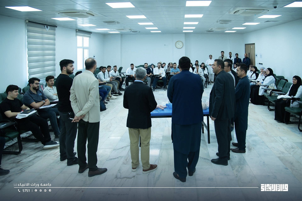 University of Warith Al-Anbiyaa (peace be upon him) welcomed an official delegation from the Rahmat Lil Aalameen Authority of Pakistan, received by the Assistant President of the University, Prof. Dr. Naufel Al-Araji, and the Dean of the College of Medicine, Prof. Dr. Ali Al-Ghizzi. The visit aimed to explore the university’s academic experiences and its modern infrastructure.