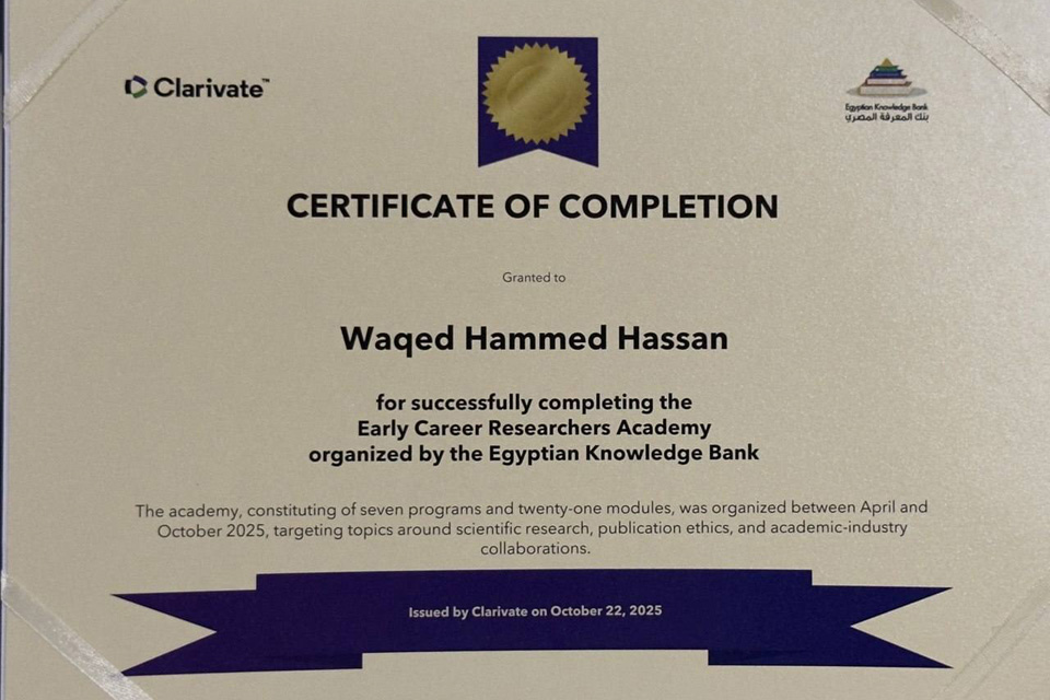 This recognition affirms the University’s commitment to supporting professional and research development within its strategic vision of achieving the Sustainable Development Goals, particularly Goal 4 (Quality Education) and Goal 9 (Industry, Innovation and Infrastructure), through investment in academic capacity-building and the promotion of a quality-driven educational environment.