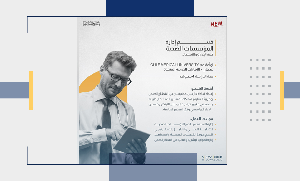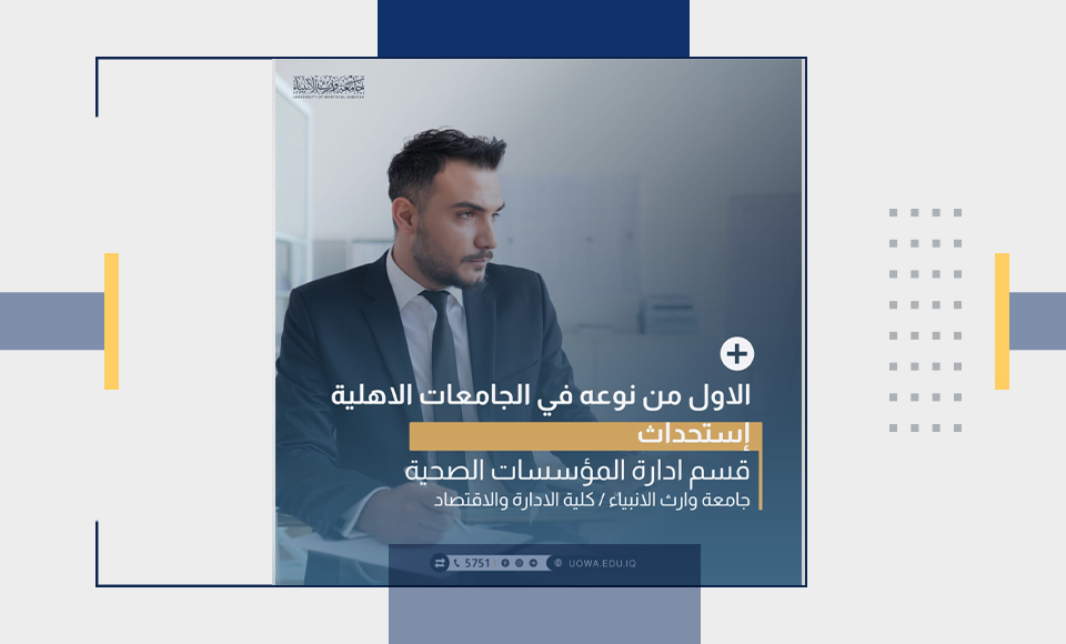 ​The Health Institutions Management Department at the College of Administration and Economics – Warith Al-Anbiyaa University qualifies you to be a part of leading the modern health system in the country.