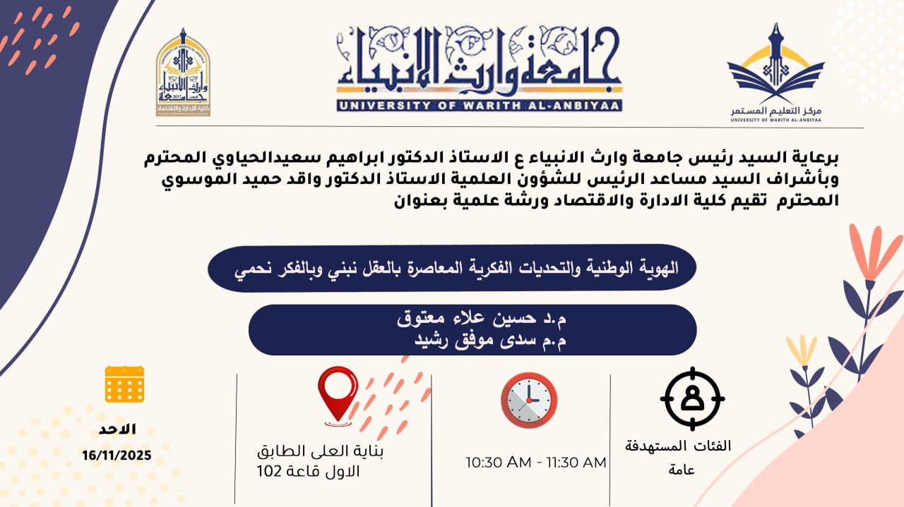University of Warith Al-Anbiyaa – where we graduate future leaders capable of shaping the economy and managing institutions with efficiency and innovation.