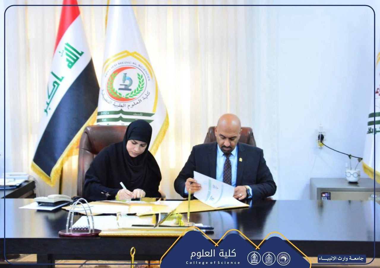 As part of strengthening academic cooperation and the exchange of scientific expertise, Assistant Professor Dr. Haider Mohammed Ali Al-Ghanmi, Dean of the College of Computer Science and Information Technology at the University of Warith Al-Anbiyaa (peace be upon him), signed a scientific twinning agreement with Professor Dr. Salah Awad Salman Al-Issawi, Dean of the College of Computer Science and Information Technology at the University of Anbar. The agreement includes the Department of Artificial Intelligence in our college and the Department of Artificial Intelligence at the University of Anbar.