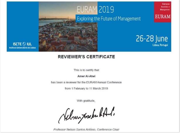 The Dean of Administration and Economics College at the University of Warith Alanbiyaa, Dr. Amer Ali Al-Atawi, participated in the 19th International Scientific Conference of the European Management Academy in Portugal, to be held in June this year. Dr. Al-Atawi said in this regard