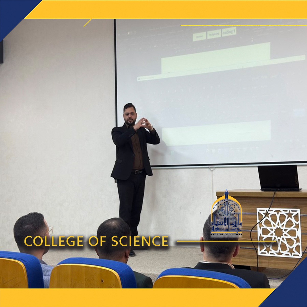 The College of Science organized a training workshop entitled: “Skills for Using Microsoft Office Applications Effectively,” targeting the faculty members of the college. The workshop was delivered by Assistant Lecturer Karar Sadiq Mohsen and Assistant Lecturer Nabeel Sadiq Abdul-Abbas.