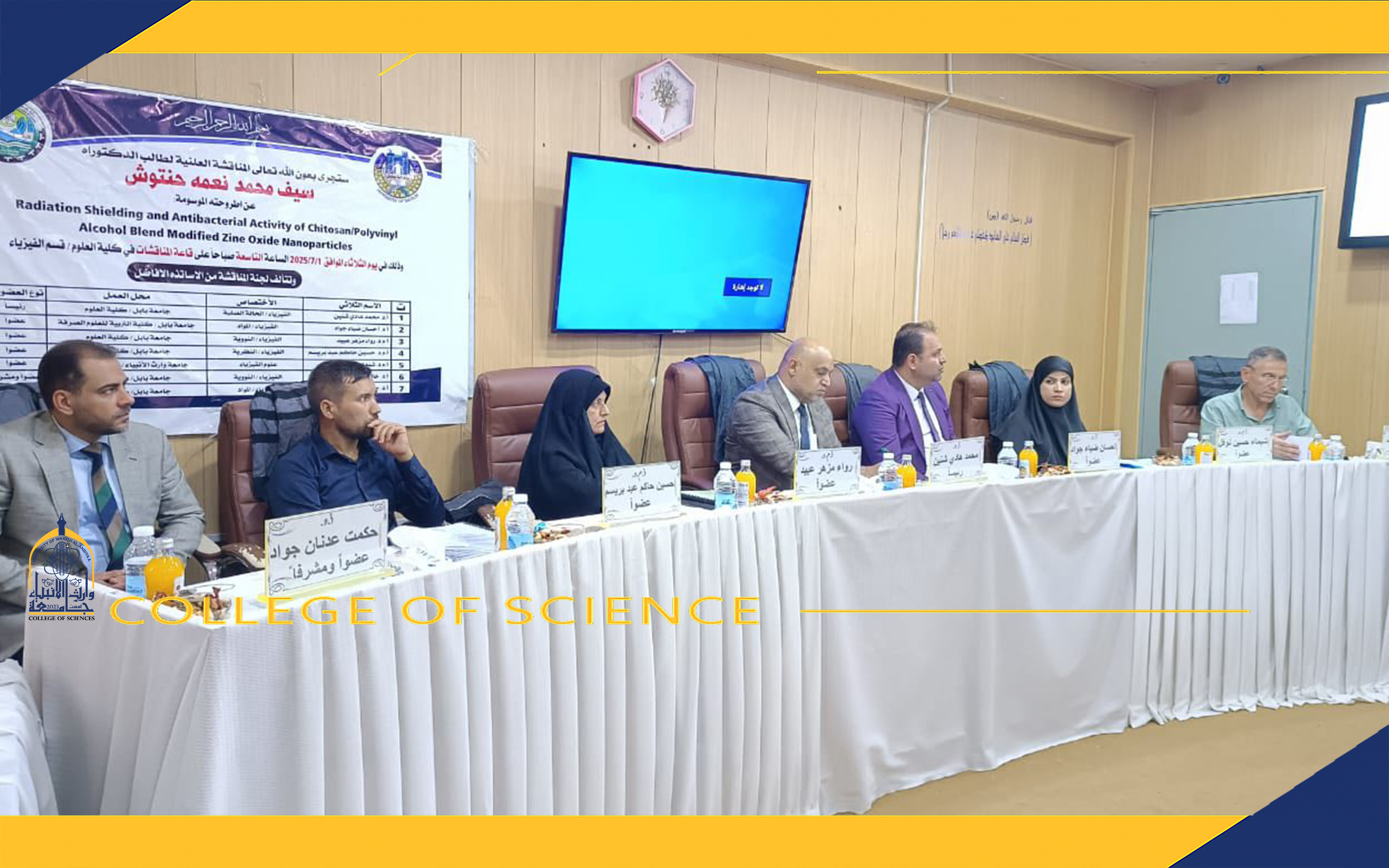 Assistant Professor Dr. Shaimaa Hussein Nofal, Dean of the College of Science at University of Warith Al-Anbiyaa, participated as a member of the doctoral dissertation defense committee in Physics for the candidate Saif Mohammed Nima Hantoush. The defense was held at the College of Science, Department of Physics, at University of Babylon.