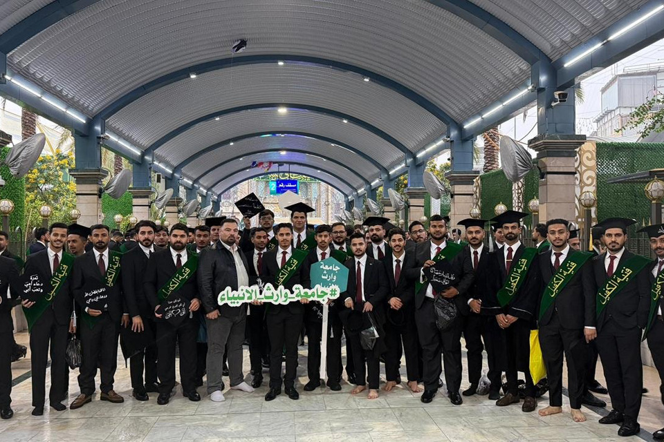 A number of students from Warith Al-Anbiyaa University, accompanied by the University’s Student Activities Department, participated in the central graduation ceremony “Fityat Al-Kafeel”, organised by the Al-Abbas Holy Shrine. The event was held in a distinguished celebratory atmosphere and attended by a large number of students and their families, reflecting a strong sense of belonging and pride in the academic journey.